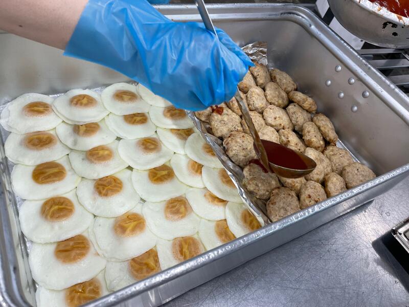 ロコモコ丼 ゆで野菜サラダ フルーツポンチ