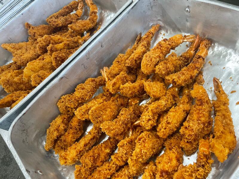 赤飯 エビフライ 磯和え すまし汁 お祝いデザート