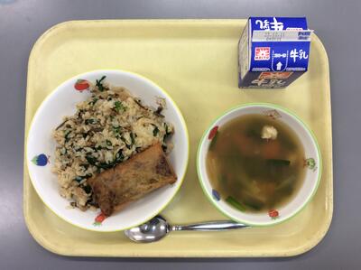 五穀ご飯 ししゃもの磯辺揚げ さつまいものレモン煮 沢煮椀 牛乳