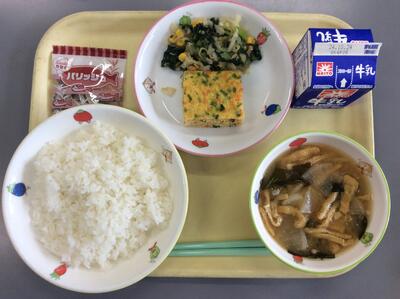 ご飯 れんこんつくね ピーマンともやしの胡麻マヨ和え 芋の子汁 牛乳