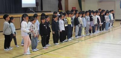 当初の計画どおりの時間帯で、1年生を迎える会が行われました。2,6年生それぞれから1年生へのプレゼント贈呈や5年生によるクイズ、1年生からのお礼の歌など、温かい雰囲気に包まれました。そして、1列になって退場していく1年生は、練習したとは言いながらも堂々としていて、これからがとても楽しみ!