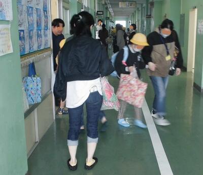 雨の中の引渡訓練となりました。晴雨関係なく、教室での引き渡しなので混乱はありませんが、昇降口は自然と込み合います。徒歩での来校に協力いただき、感謝します。