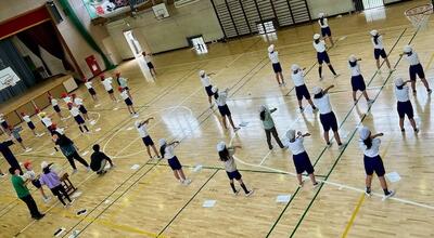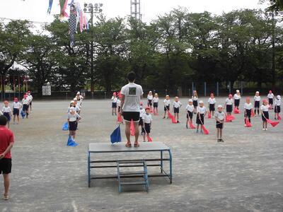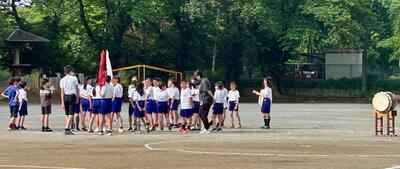 昨日から本格的な運動会練習が始まりました。校庭では、5,6年生がフラッグの小気味よい音を響かせています。業間休みには体育館で、応援団が太鼓に合わせて1拍子、2拍子…と力強い練習をしています。