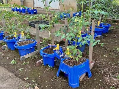 昨日2年生が、一鉢栽培でミニトマトの苗を植え付けました。すでに青い実をつけたものも見られます。観察をしながら収穫を楽しみにしてほしいです。