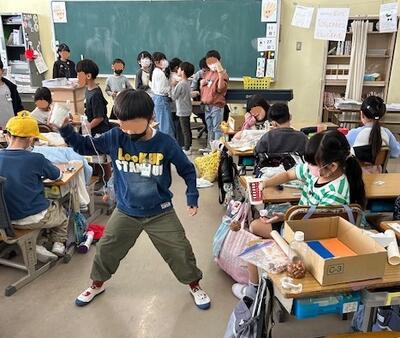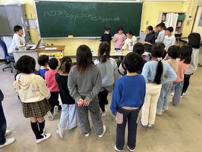 午後、3年生のあるクラスはお楽しみ会。「ハロウィンとクリスマスがまざったお楽しみ会」と書かれた黒板の文字に惹かれて覗いてみました。10月末のハロウィン。12月下旬のクリスマス。今はちょうどその真ん中。明日はブラックフライデーという世の中ですが、3年生なりに考えたイベントです。