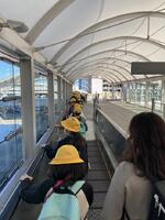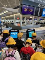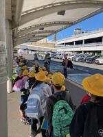 暖かな日差しの中、4年生が成田空港や清掃工場の見学に出かけました。空港内は、コンダクターの案内に従ってグループごとに見て回ります。