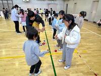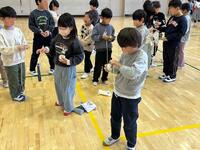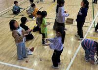 体育館に2年生が1年生を招いて、昔遊びを一緒に楽しむ姿がありました。2学期後半から練習してきた2年生の上達は確かで、それを丁寧に1年生に伝授しています。独楽・けん玉・あやとり・おはじき・あやとりのコツなどを、どのように相手に伝えるかが2年生にとっての大きな学びになるわけです。