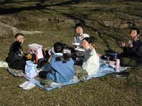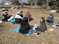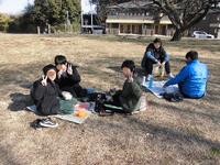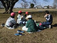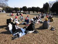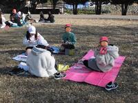 この5年生が、今日はお弁当を持って姥山貝塚にレジャーシートを広げて昼食です。全然寒くないし貸し切りでサイコーです。校外学習をオンラインに切り替えたため、給食の提供のない日ができてしまったためですが、作ってもらった弁当を晴天の下、嬉しそうに食べています。
