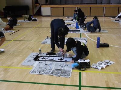 今日は3年生と4年生の書き初め本番。水曜日が5,6年生です。冬休みに練習をした成果が表れているといいなぁ。