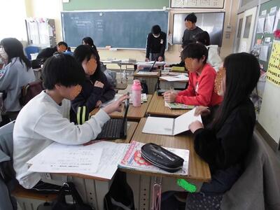 5時間目は、百人一首で顔を寄せ合うクラスがたくさんありました。家庭科室でも繰り広げられていました。