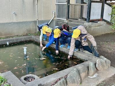 昨日は霜柱が立つ寒さでしたし、今日も引き続き寒い朝でした。正門わきの池には氷が張って、まるで透明なゼリーのようです。それを見つけた子らが手を入れたり氷を手に取ったり…。その輪が広がっていくのを見て心は温かくなっていきます。