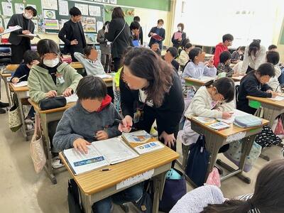 5時間目の4年生は、「小数のかけ算わり算」の学習でした。割られる数が割る数より小さいときにどうする?