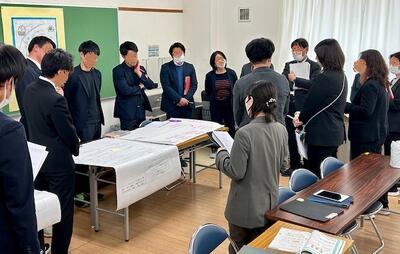 放課後は、先生方が集まって授業に関して協議をしました。講師を交えながら、自由に発言でき、認め合える雰囲気があります。