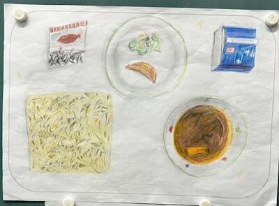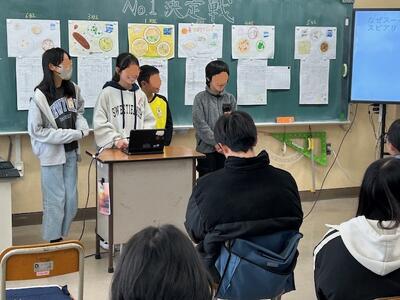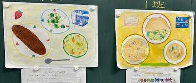 6時間目は、6年生の教室に腰を据えて発表に耳を傾けました。各班で考えた「No.1献立」の発表場面です。メニュー選択の理由が明確で、栄養バランス、いろどりなどがよく考えられています。さらに、絵が素晴らしい!