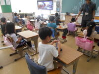 1~4年生は、お手伝いに来てくださった保護者の皆さんと