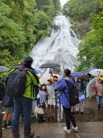 大山千枚田に着きました。快晴の中に映える棚田の眺めが壮観です。