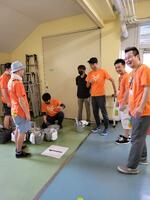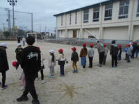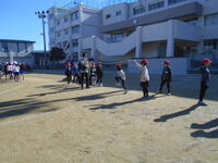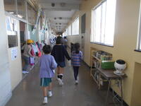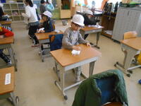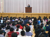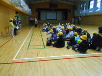 防災朝会で、地震が起きたらどう行動するのかを一人一人が考えようと話をしました。