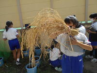 5年生が1年間米作りでお世話になった緑のみずがき隊の皆さんに