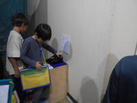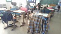夏休みに頑張った学習や作品をもって、大きな荷物で登校していました。
