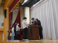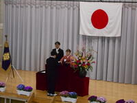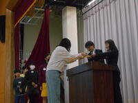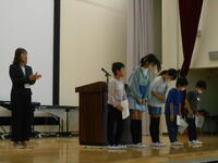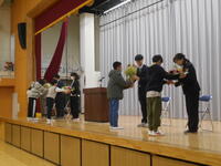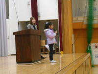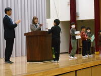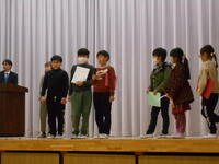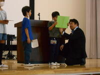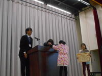 英語のコンテストで素晴らしい賞をとったことについて表彰をしました。