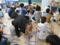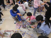 うちわの骨、ワイヤー、ペットボトル、ストロー、段ボール・・・
