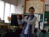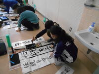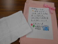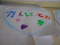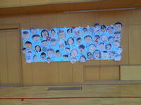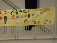 お祝いの横断幕が完成し、みんなに紹介しました。