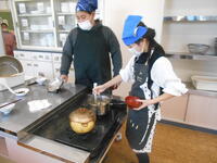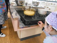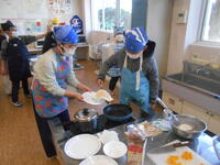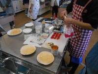 フライパンと包丁を上手に使っておいしいクレープができました。