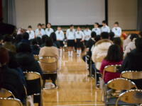 在校生代表として5年生、保護者の皆様、学校運営協議会委員の皆様が