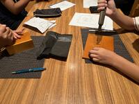 お風呂に入り、今日1日の汗をきれいに流し、夜の部、日光彫体験を行います。