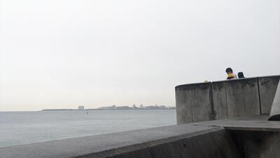あいにく雨が降ってきたので、ちょっとだけの時間でしたが、外に出て港から東京湾を眺めました。
