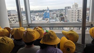 午前中の見学始まりました。かっこいい!おもしろい!子どもたちの声が聞こえてきます。天気にも恵まれて展望台からの眺めも良好です。