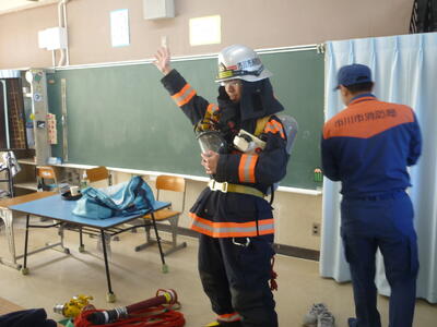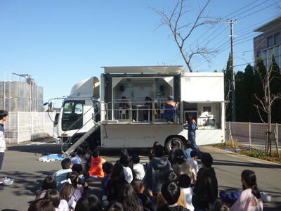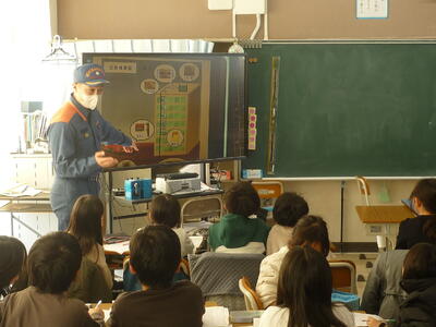 また、代表児童による消火器使用訓練と5年生による地震体験車による体験訓練も行いました。