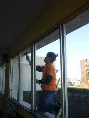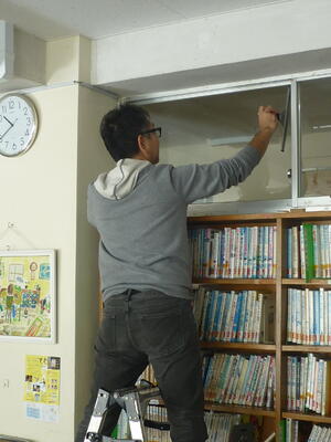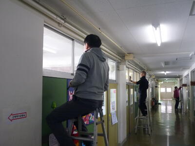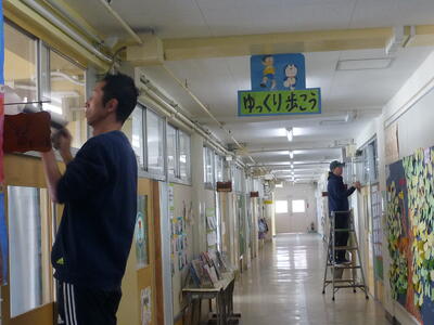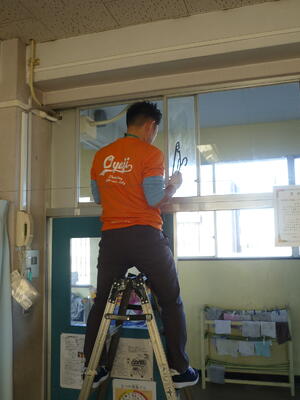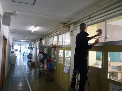 お休みの日にもかかわらず、おやじの会の皆様が日ごろ手の届かないところを中心に窓清掃に駆けつけてくださいました。子どもたちは月曜日に登校して、窓がきれいになっていることに気付いてほしいです。