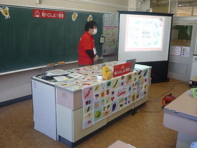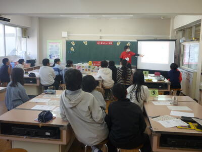 食品企業をお招きして「栄養バランスを考えた朝食選び」について学習しました。