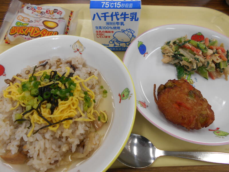 給食でも「たこめし」を作りました。
