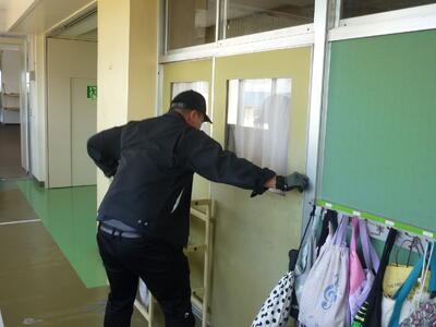 市川警察署生活安全課のおまわりさんに犯人役をしていただき、校舎内に不審者が侵入したことを想定した訓練を行いました。緊急放送とともに子どもたちは教室に避難し、鍵をかけ、机やいすでバリケードを作り、声を潜めて隠れました。警察に通報して到着まで7分間が目安だそうです。警察の方の真剣なご対応により、緊張感のある訓練となりました。児童下校後には、職員は警察の方から改めて研修を受けました。