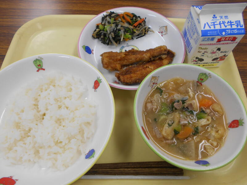 ごはん 磯香あえ イワシのかば焼き 豚汁 牛乳