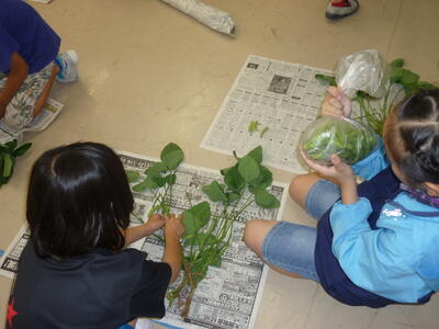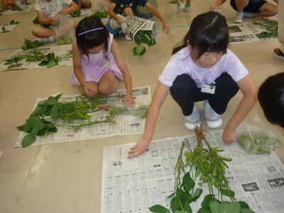 今日は3年生が給食で提供される枝豆の差やもぎを行いました。