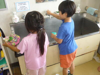 今日から1週間、歯ブラシコースとぶくぶくコース、自分で選んで給食後に取り組みます。