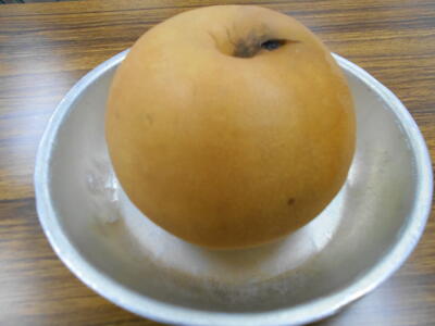 農家の方が大切に育てたなしです。傷がついても味はおいしいものです。給食では、傷を取り除き、皮むきをし、小中あわせて18㎏の梨を使い肉に漬け込みました。北方小6年生のリクエストメニューです。