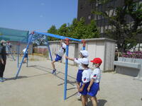 校庭では、鬼ごっこ。汗びっしょりに走り回りました。