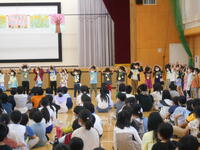 全校児童が集まって、1年生の入学をお祝いした時間となりました。