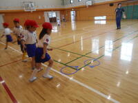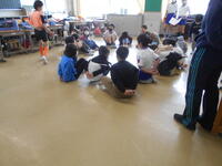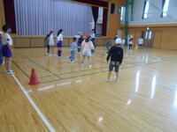 1年生も体育の学習が始まりました。体育館を使って、走る運動を行いました。