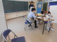 聴力検査をしました。言葉の教室担任が検査をしています。