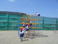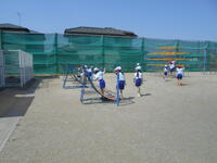 校庭では、鬼ごっこ。汗びっしょりに走り回りました。