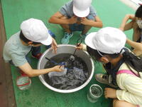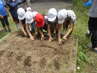 外に出て、北方小学校のマスコット「ぼっくん」をみんなで作りました。