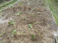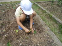 まつっこ学級の前の花壇にある野菜が大きく育っています。