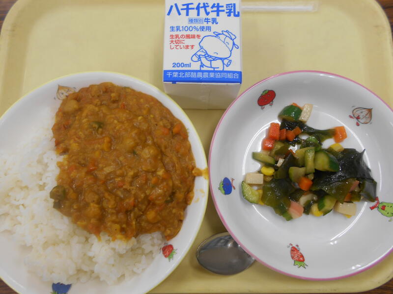 今日は、人気メニューのカレーの献立です。