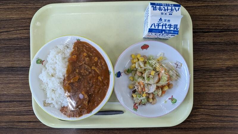 今日10月10日は「目の愛護デー」です。色の濃い野菜を食べると目の疲れをとってくれます。今日の給食は、色の濃い野菜の人参を使った「チャーハン」です。主菜の鮭に含まれる「アスタキサンチン」は、目の疲労回復に効果的です。毎日ついている牛乳も目の健康に役立ちます。