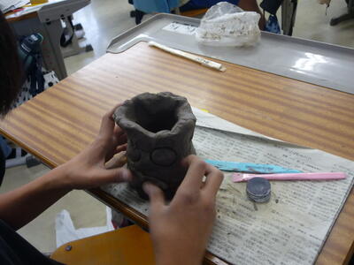糸で切ったり、模様をつけたり、思い思いの世界で一つだけのオリジナル陶器を製作しております。